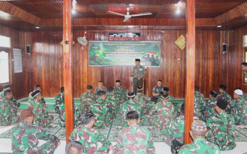 Peringati Isra Mi’raj 2026, Kodim 1206/Putussibau Perkuat Mental Prajurit Melalui Doa Bersama dan Tausiyah